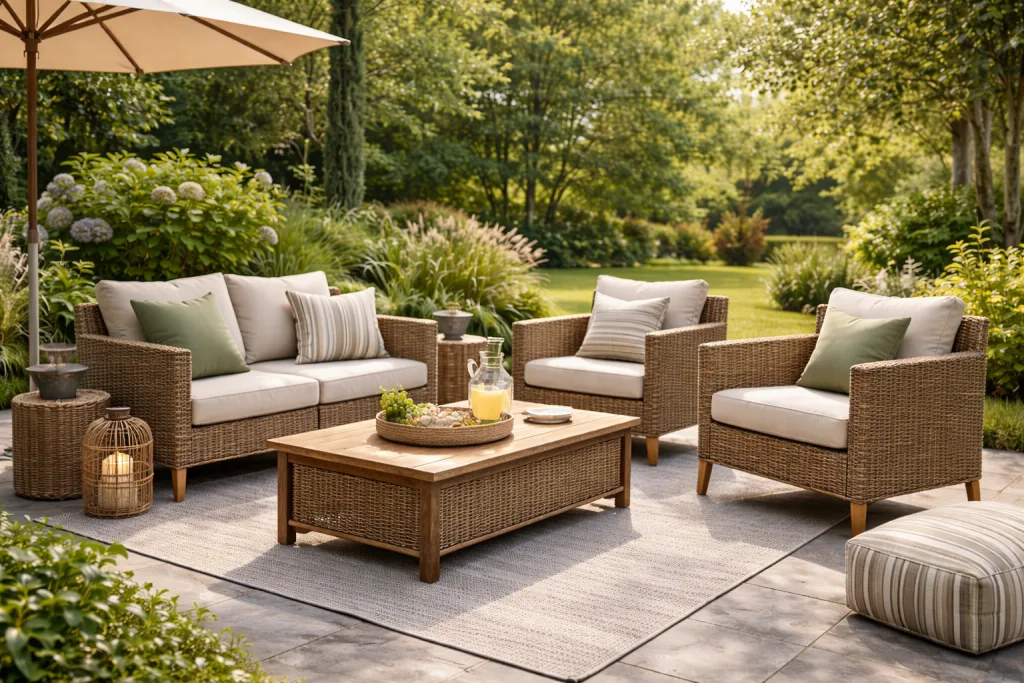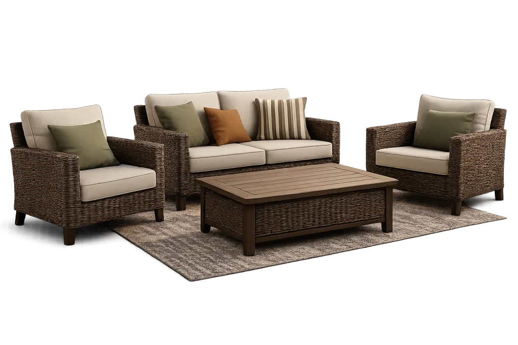 Outdoor Rocking Chair Set – Braided Rope Leisure Set with Footstools