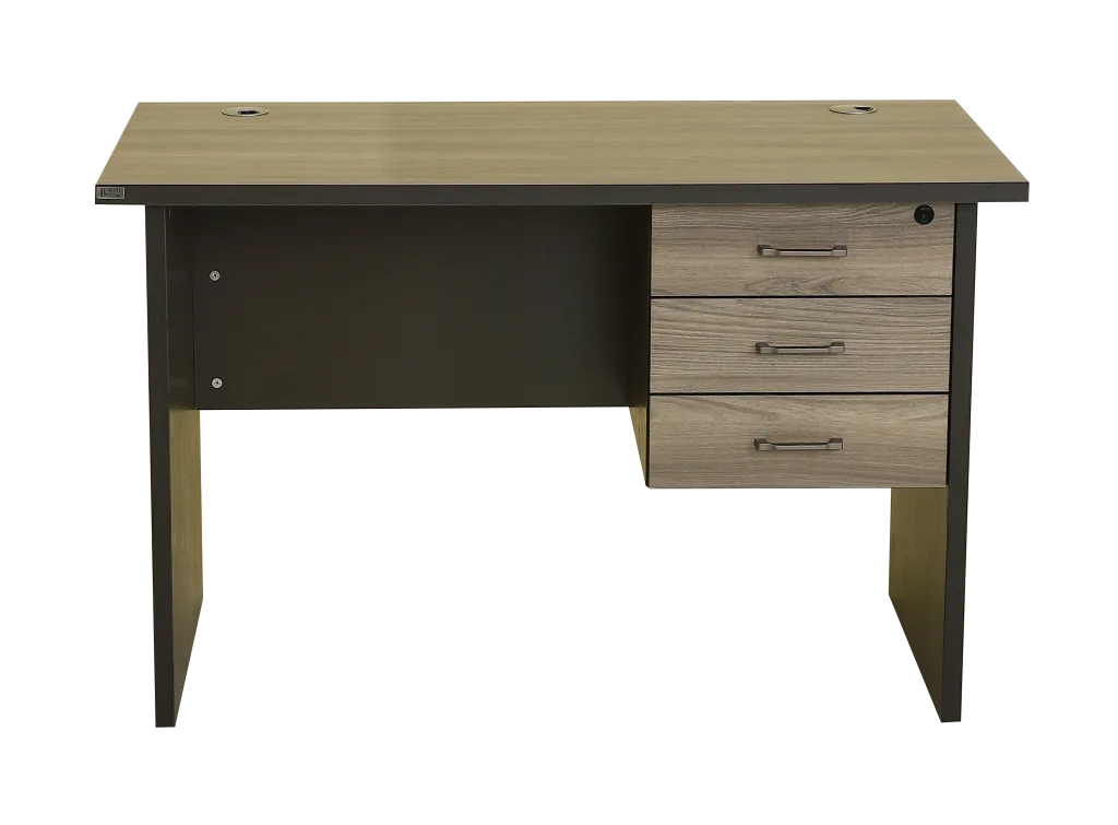 Modern Office Table – Elephant Gray Wood Grain Desk with Drawers